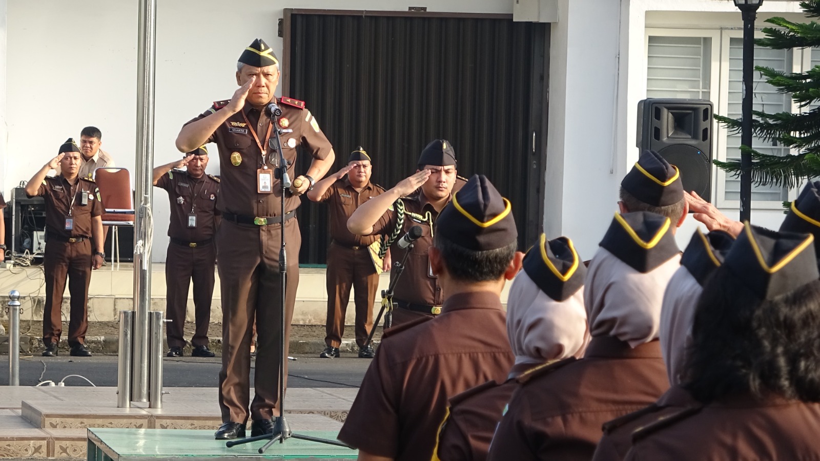 MEDAN-Kepala Kejaksaan Tinggi Sumatera Utara Idianto,SH,MH pimpin apel pagi seluruh pegawai dan jajaran Kejati Sumut mulai dari para Jaksa Senior, para Asisten, Koordinator,Kabag TU, para Kasi, pegawai, honorer, petugas PTSP, cleaning service dan tenaga pengamanan atau satpam.