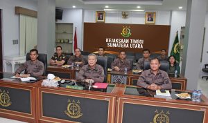 MEDAN-Kepala Kejaksaan Tinggi Sumatera Utara Idianto,SH,MH pimpin apel pagi seluruh pegawai dan jajaran Kejati Sumut mulai dari para Jaksa Senior, para Asisten, Koordinator,Kabag TU, para Kasi, pegawai, honorer, petugas PTSP, cleaning service dan tenaga pengamanan atau satpam.